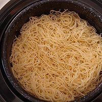 細面條:500克 ,將面條蒸制8分鐘左右至八成熟,成熟后將面條打散晾涼備用。
