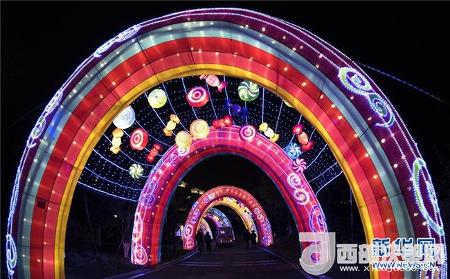 1月1日,在武漢園博園第三屆花燈會上,市民在大紅燈籠組成的長廊中穿行。當日,武漢園博園第三屆花燈會開幕。本屆花燈會共設置8大版塊118組彩燈,吸引了許多市民前來觀賞。(記者 程敏 攝)