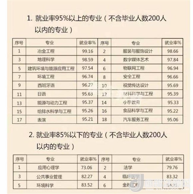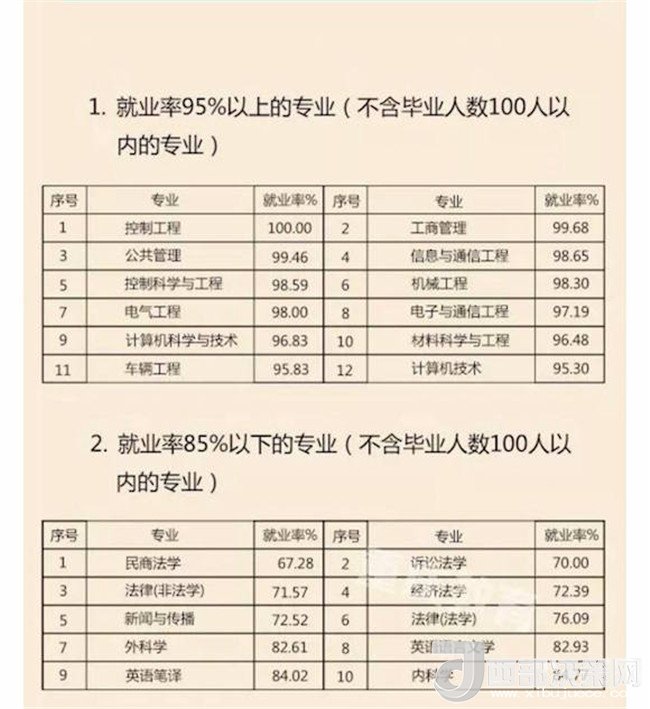 即將畢業(yè),你找到中意的工作了沒?近日,重慶市教委發(fā)布《重慶市2017屆普通高校畢業(yè)生就業(yè)情況報告》。據(jù)統(tǒng)計,2017年,全市共有普通高校畢業(yè)生約21.49萬人,截至2017年8月31日,我市2017屆普通高校畢業(yè)生就業(yè)率為89.65%,與2016屆同比上升0.56%。記者了解到,控制工程專業(yè)、藥品質(zhì)量檢測技術(shù)、汽車服務(wù)與管理等專業(yè),其就業(yè)率達(dá)100%。哪個專業(yè)就業(yè)前景“低調(diào)卻奢華”?哪個專業(yè)只是“看上去很美”?趕緊往下看吧!