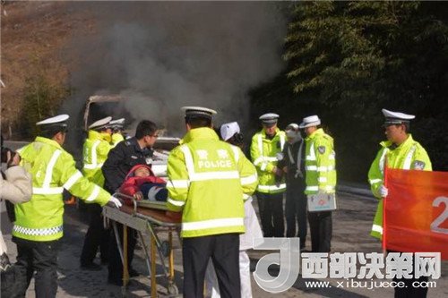 西部決策網(wǎng)-西部大開發(fā)訊(帥華鋒 通訊員 馬存福 漆曉明)1月8日上午11時(shí),甘肅康縣消防大隊(duì)聯(lián)合交警、衛(wèi)生等部門在國道345線康縣段舉行了道路交通事故模擬應(yīng)急處置演練活動。