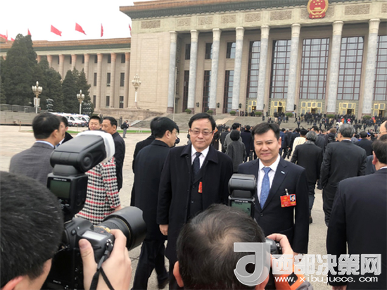 (圖為全國人大代表張近東在十三屆全國人大一次會(huì)議上接受記者采訪)