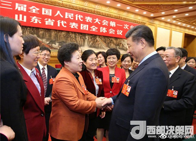 新華網(wǎng)北京3月8日電 8日上午,習(xí)近平到山東代表團(tuán)參加審議。正值“三八”國際勞動?jì)D女節(jié),習(xí)近平代表黨中央向女代表、女委員、女工作人員及全國各族各界婦女同胞,致以節(jié)日的祝賀和誠摯的祝福。