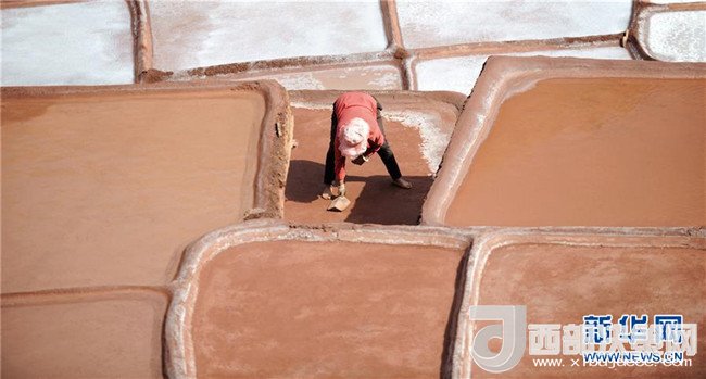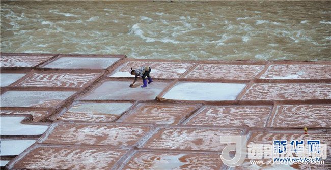 鹽農(nóng)在打理自家的鹽田(3月11日攝)。位于西藏東南部與滇北高原毗連處的昌都芒康縣鹽井古鹽田,是至今仍保持最原始手工曬鹽方式的鹽田。據(jù)史料記載,早在唐朝時(shí)期這里就開始曬鹽。目前該處有鹽田3000多塊,從事鹽業(yè)生產(chǎn)的居民有300多戶。當(dāng)?shù)厝罕娫跒憸娼祥_山鑿井,取出巖層深處含鹽的鹵水倒入鹽田,經(jīng)陽(yáng)光蒸曬、風(fēng)干,結(jié)晶成鹽。新華社記者晉美多吉攝