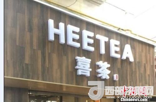 資料圖:在店鋪門(mén)頭上抄襲使用與“喜茶”中文商標(biāo)相同、與“Heytea”英文商標(biāo)近似的組合標(biāo)識(shí)。供圖 申海 攝