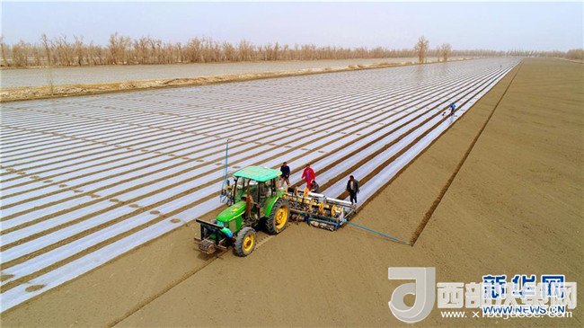 日前,位于塔里木墾區(qū)的新疆生產(chǎn)建設(shè)兵團(tuán)職工群眾開始播種棉花。據(jù)了解,塔里木墾區(qū)新疆生產(chǎn)建設(shè)兵團(tuán)計(jì)劃播種棉花300多萬畝,4月上旬將完成全部播種任務(wù)。新華社發(fā)(杜炳勛 攝)