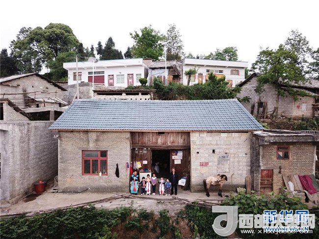 4月22日,吉雪和家人在老房子前留影(無(wú)人機(jī)拍攝)。