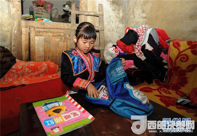 在今年的易地扶貧搬遷中,家住貴州省安順市西秀區(qū)巖臘鄉(xiāng)龍?zhí)洞甯裆趁缯?歲女孩吉雪,與家人一起從缺水、耕地少、海拔高的格沙苗寨搬遷至50公里外的西秀區(qū)工業(yè)園區(qū)易地扶貧搬遷安置點(diǎn)——彩虹社區(qū)。從4月21日夜開(kāi)始,吉雪便開(kāi)始忙著收拾自己的書包,準(zhǔn)備隨同爺爺、奶奶、妹妹一起離開(kāi)深山苗寨。