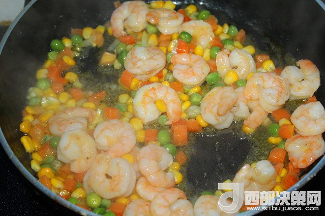 3.蔬菜粒用開(kāi)水焯一下?lián)瞥隹馗蓚溆?/div>