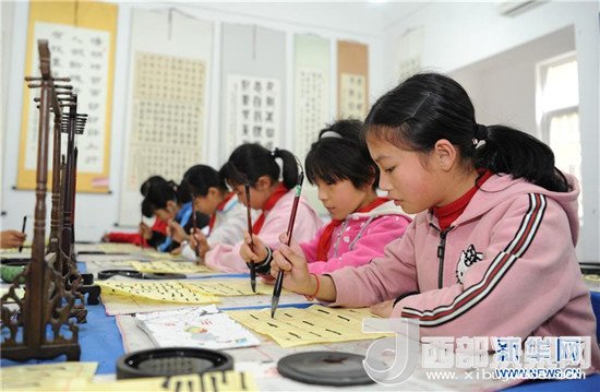 陜西省漢中市勉縣溫泉鎮(zhèn)中心小學,是勉縣在汶川地震受災(zāi)后重建的一所鄉(xiāng)村小學,目前在校學生470人。近年來,溫泉鎮(zhèn)中心小學不斷改善辦學條件和辦學質(zhì)量,在校內(nèi)建成音樂教室、書法教室、圖書室等多樣化教學場所,并長期開展舞蹈課、書法課、民俗表演課等素質(zhì)教育課程,使學生們能夠享受到優(yōu)質(zhì)的教育服務(wù)。新華社發(fā)(張博文 攝)