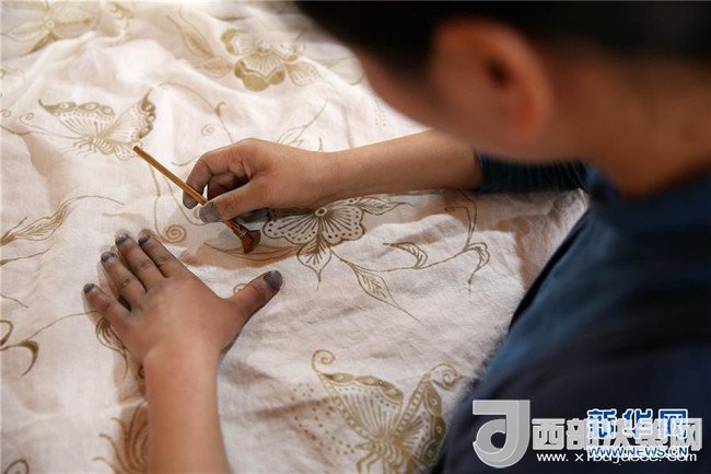 今年25歲的張義蘋是一位有著蠟染創(chuàng)業(yè)夢的苗族女青年。1993年,張義蘋出生在有著“蠟染之鄉(xiāng)”美稱的貴州省丹寨縣。家鄉(xiāng)蠟染文化的耳濡目染,母親手把手的教導,讓她對蠟染很著迷。為了傳承蠟染技藝,傳播蠟染文化,2014年,在外打工的張義蘋回到家鄉(xiāng)丹寨縣揚武鎮(zhèn),成立了蠟染手工合作社,開始了蠟染創(chuàng)業(yè)之路。 2016年,她在縣文化部門的幫助下成立了蠟染公司,以“公司+合作社+手工藝人”的模式,研發(fā)家居、服飾等系列蠟染新產(chǎn)品,拓寬銷售渠道。經(jīng)過幾年的發(fā)展,張義蘋開設起蠟染產(chǎn)品專賣店,在縣城附近建立了手工生產(chǎn)基地,并通過電商和網(wǎng)絡直播等方式銷售蠟染產(chǎn)品,帶動了100多名家鄉(xiāng)婦女走上脫貧之路。她說:“我有一個夢想,要做出自己品牌的蠟染產(chǎn)品,把古老而質(zhì)樸的苗族蠟染文化傳播出去”。新華社發(fā)(黃曉海 攝)
