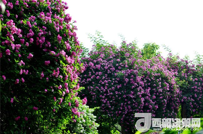 5月1日,寧強(qiáng)縣縣城三角洲公園里盛開的薔薇花格外艷麗。