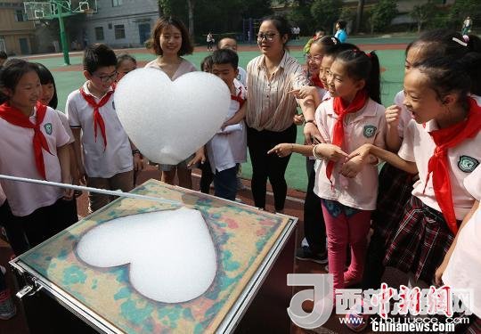 孩子們體驗(yàn)造云工程師,制造出“心形云”。 泱波 攝