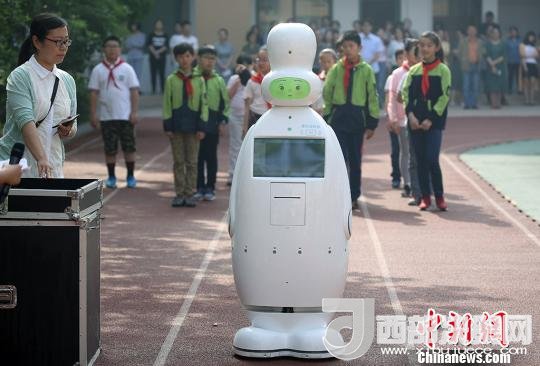 人工智能機(jī)器人“木木”擔(dān)綱科學(xué)嘉年華主持人。 泱波 攝