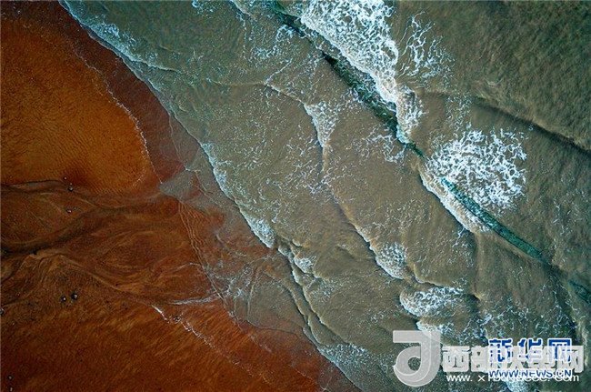 5月16日無(wú)人機(jī)航拍的霞浦沿海灘涂海浪沖刷沙灘的美景。