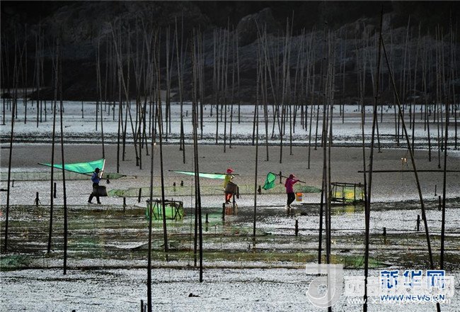 福建省寧德市霞浦縣海岸線綿延曲折,灘涂風(fēng)光旖旎,隨著季節(jié)和天氣變化呈現(xiàn)出不同景致,吸引許多游客前來(lái)欣賞美景。2017年,霞浦接待游客333.7萬(wàn)人次,旅游總收入25億元。新華社記者 魏培全 攝