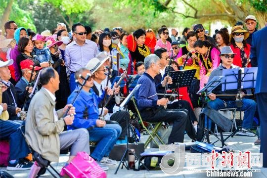 圖為敦煌市沙州樂(lè)園民族歌舞團(tuán)在莫高窟前表演敦煌民間戲曲。 王斌銀 攝