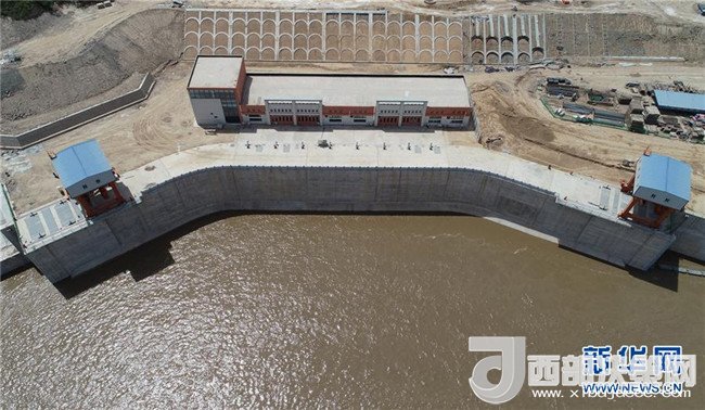 延安黃河引水工程取水樞紐施工現(xiàn)場(5月30日無人機拍攝)。