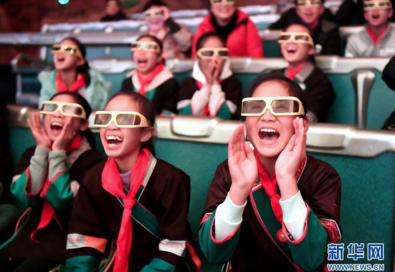 在廣西柳州市景行小學(xué)柳東校區(qū),來(lái)自三江侗族自治縣和融安縣大山里的留守兒童觀看3D動(dòng)畫(huà)片(1月4日攝)。當(dāng)日,柳州市舉行關(guān)愛(ài)留守兒童城市圓夢(mèng)活動(dòng)。新華社發(fā)(黎寒池 攝)