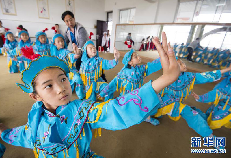 江蘇省南通市海安縣西場(chǎng)小學(xué)學(xué)生在練習(xí)京?。?月26日攝)。新華社發(fā)(徐勁柏 攝)