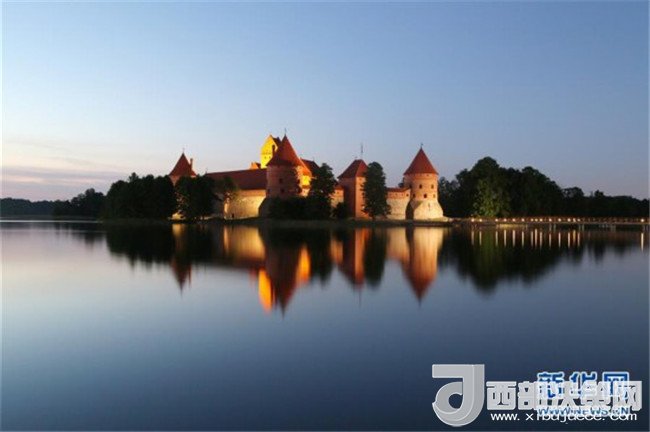 這是5月30日拍攝的落日余輝中的特拉凱城堡。特拉凱城堡位于立陶宛首都維爾紐斯以西約25公里的加爾韋湖的一個(gè)湖心島上,始建于14世紀(jì)。新華社記者李驥志攝