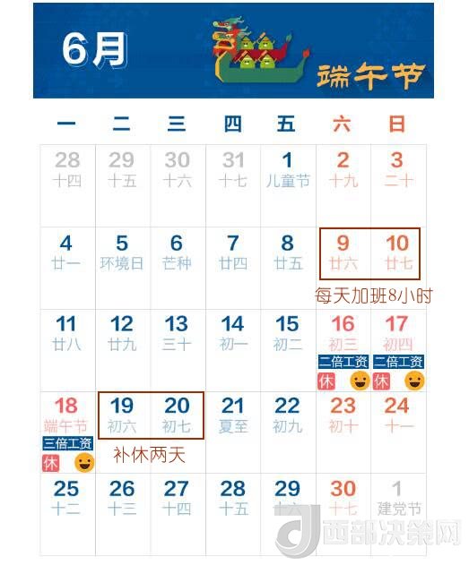 今年端午節(jié)放假時(shí)間為6月16日至18日,共計(jì)3天。中新經(jīng)緯客戶端注意到,只要能在19日-22日請假4天,端午節(jié)便可連休9天。