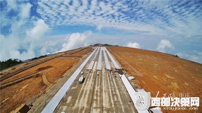 “前期遇到的最大障礙就是土石方開(kāi)挖和回填工程。”現(xiàn)場(chǎng)施工管理人員介紹,作為渝東北典型的高填方機(jī)場(chǎng),巫山機(jī)場(chǎng)填筑體最高處達(dá)100余米,整個(gè)擬建場(chǎng)地相對(duì)高差約227.25米,道槽區(qū)最大填高達(dá)50米,施工過(guò)程中需處理的溶洞多達(dá)40處,施工難度極大。在土石方作業(yè)最忙時(shí)每天有近2000人和800多臺(tái)機(jī)具晝夜施工,土石方運(yùn)輸車(chē)輛川流不息。
