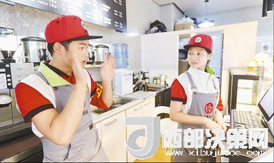 6月21日,在貴陽市貴陽北站一家名為“無聲飲品”的飲料店內(nèi),服務員在用手語相互交流。從點單到付款,再到制作交遞,店員和顧客間都通過手語或手寫紙條進行交流。這家小店是貴陽市盲聾啞學校的校企合作項目,店內(nèi)所有服務人員均是聾啞學生。截至目前,貴陽已有4家“無聲飲品”店,為近50名聾啞學生提供了實習和就業(yè)平臺。歐東衢攝