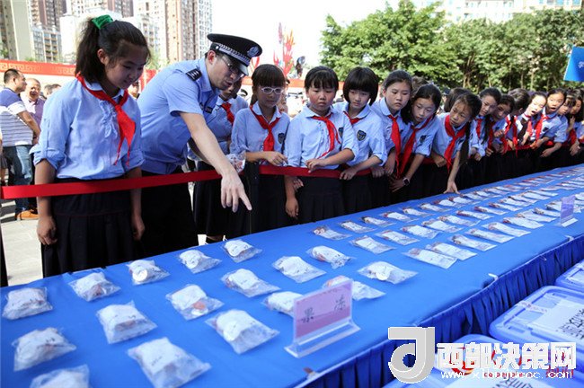 學(xué)生參觀展示的各類毒品,并學(xué)習(xí)如何識別毒品,了解毒品危害。劉政寧 攝