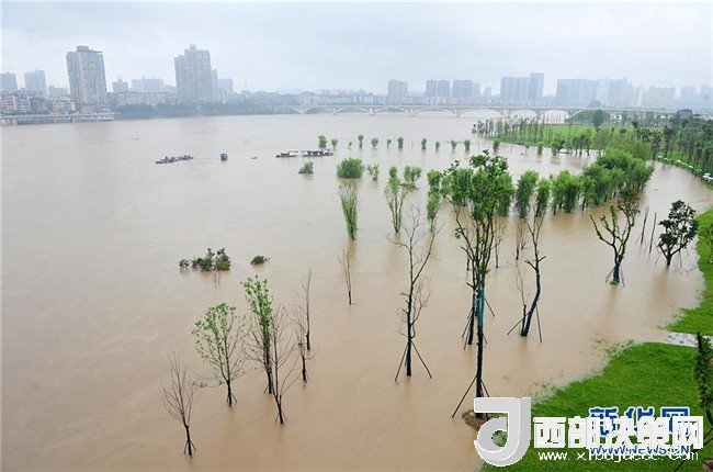 7月3日,在四川省南充市,嘉陵江南充主城區(qū)段洪峰過(guò)境,沿岸大量綠地被淹。 新華社發(fā)(樂(lè)校臣 攝)