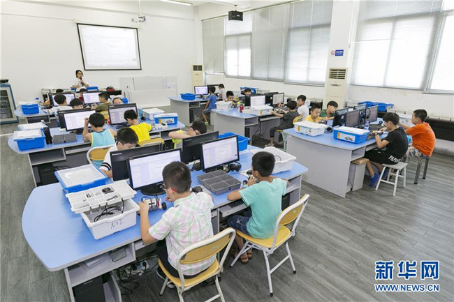 暑假期間,福建省晉江市舉辦青少年科普公益課堂,增強(qiáng)青少年的創(chuàng)新意識(shí),豐富學(xué)生們的假期生活。 新華社發(fā)(賴(lài)進(jìn)財(cái) 攝)