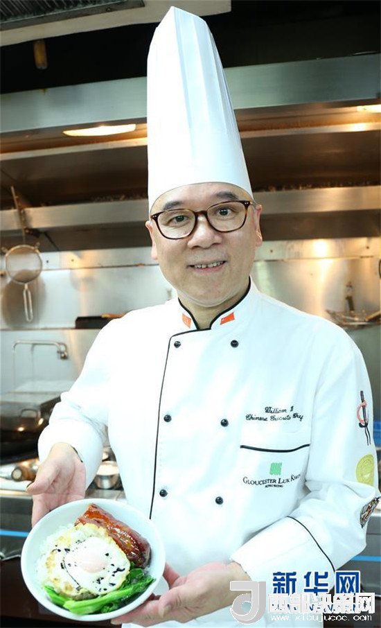 在香港六國酒店,香港中廚師協(xié)會(huì)會(huì)長(zhǎng)馬榮德向記者展示他剛剛制作的“黯然銷魂飯”(6月14日攝)。新華社記者 萬后德 攝