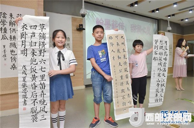 7月24日,在福建省少年兒童圖書館,參加省級(jí)書法名師公益夏令營(yíng)的孩子們?cè)诜窒頃▌?chuàng)作體會(huì)。