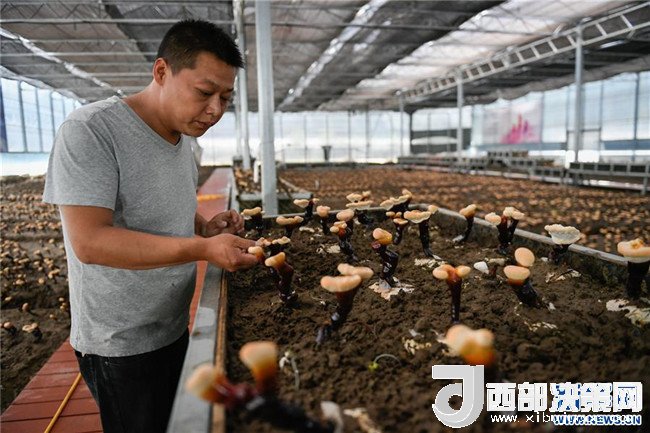 技術(shù)人員在西藏林芝市米林縣南伊村白靈芝種植基地大棚內(nèi)查看白靈芝長勢(shì)(7月27日攝)。新華社記者劉東君攝