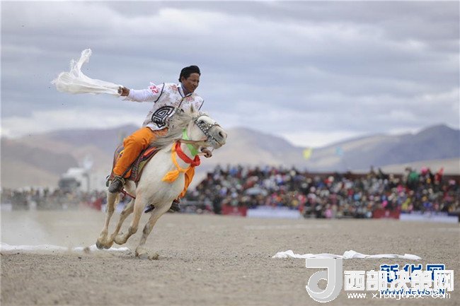 當(dāng)日,西藏阿里地區(qū)在獅泉河鎮(zhèn)舉行賽馬競(jìng)技大賽,比賽項(xiàng)目有騎馬拾哈達(dá)、撿茶磚、騎馬射箭、馬術(shù)表演等,共有150名農(nóng)牧民選手參加比賽,吸引了2萬(wàn)余名觀眾前來(lái)觀看。新華社記者張汝鋒攝