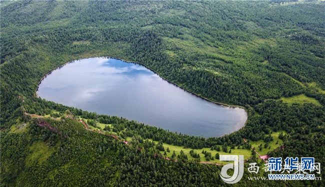 8月5日拍攝的阿爾山天池(無(wú)人機(jī)全景拍攝)。