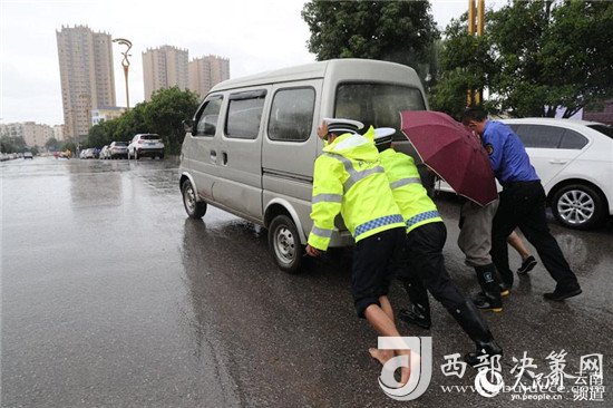 市民抓拍!云南昭通“赤腳交警”冒雨幫市民推車