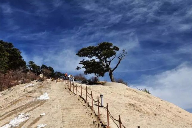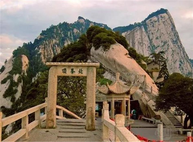 北峰海拔1614米,為華山主峰之一,因位置居北得名。北峰四面懸絕,上冠景云,下通地脈,巍然獨(dú)秀,有若云臺(tái),因此又名云臺(tái)峰。唐李白《西岳云臺(tái)歌送丹丘子》詩(shī)曾寫到:“三峰卻立如欲摧,翠崖丹谷高掌。白帝金精運(yùn)元?dú)?,石作蓮花云作臺(tái)。”
