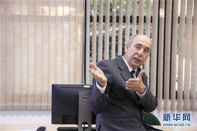 8月30日,在巴西圣若澤杜斯坎普斯,中國-巴西空間天氣聯(lián)合實(shí)驗(yàn)室巴方運(yùn)營負(fù)責(zé)人若阿金·科斯塔在介紹實(shí)驗(yàn)室運(yùn)轉(zhuǎn)情況。 新華社記者 李明 攝