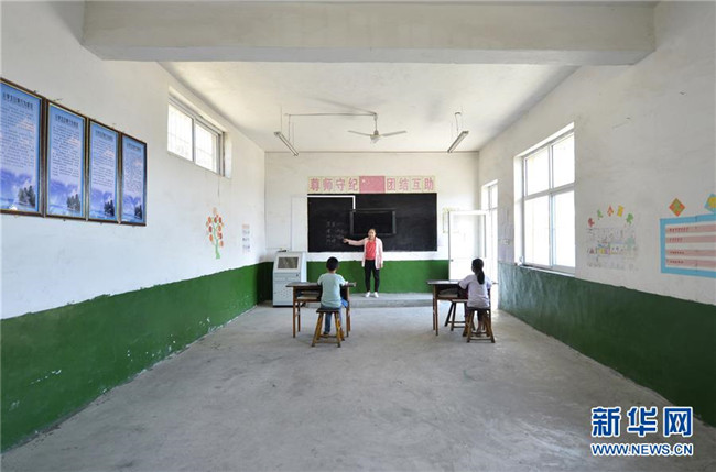 9月9日,崔芳英老師在為兩名學(xué)生上數(shù)學(xué)課。新華社記者 朱旭東 攝