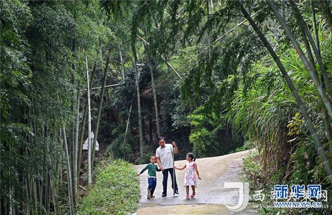 高自仁(中)帶新入學(xué)的新生去學(xué)校附近的竹林參觀,讓孩子們熟悉環(huán)境,了解大自然(9月3日攝)。新華社記者 萬(wàn)象攝