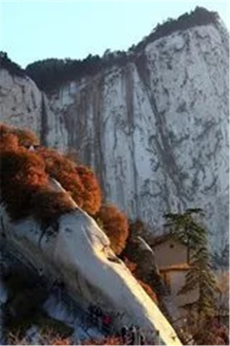 秋天的華山,溫度適中,山崖為底,松檜為墨,秋風(fēng)好比一支神奇的彩筆肆意揮灑,將華山繪就成了一幅燦爛的畫卷。