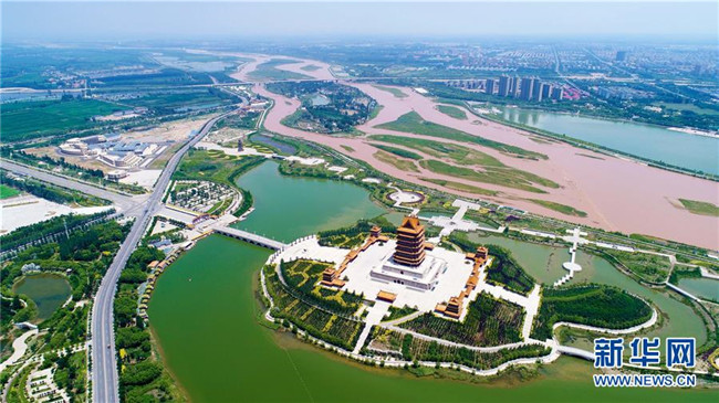 這是寧夏吳忠市黃河樓及周邊(6月26日無人機拍攝)。 寧夏,地處中國西北腹地。這里的大山、大河、草原、沙漠、湖泊,猶如一幅幅美妙畫卷,讓人流連忘返。 新華社記者 王鵬 攝