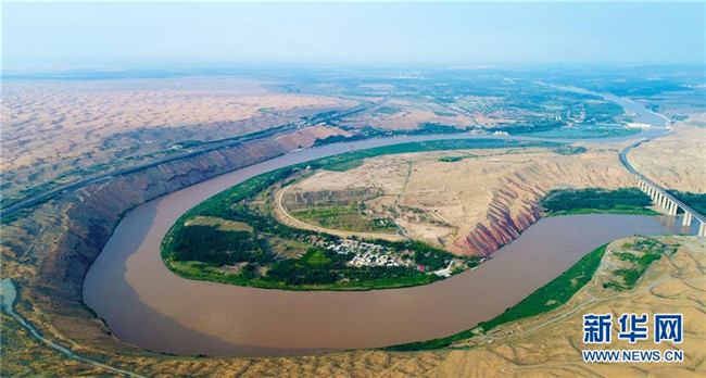黃河流經(jīng)寧夏中衛(wèi)市騰格里沙漠邊緣(6月26日無人機拍攝)。 寧夏,地處中國西北腹地。這里的大山、大河、草原、沙漠、湖泊,猶如一幅幅美妙畫卷,讓人流連忘返。 新華社記者 王鵬 攝