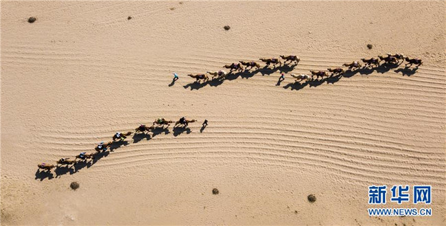 游客騎著駱駝在寧夏石嘴山市平羅縣沙湖景區(qū)觀光旅游(9月12日無人機拍攝)。 寧夏,地處中國西北腹地。這里的大山、大河、草原、沙漠、湖泊,猶如一幅幅美妙畫卷,讓人流連忘返。 新華社記者 王建華 攝