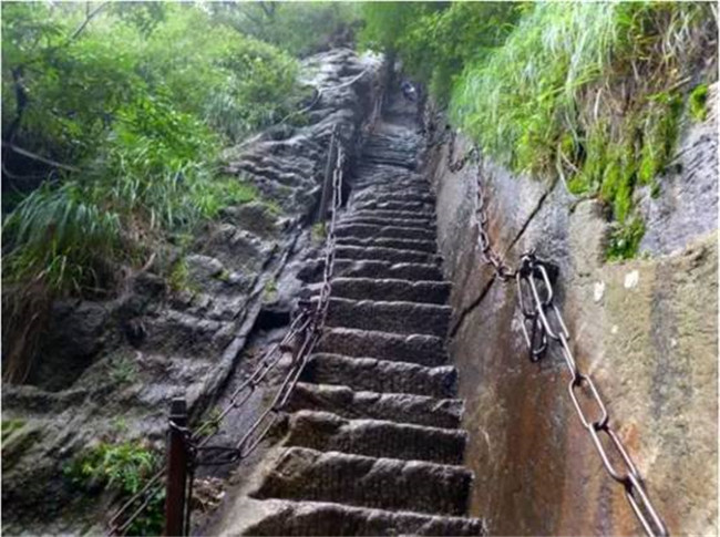 其實,攀爬千尺幢也是如此的感覺。心理上對于險要的感受,隨著腳步的向上移動而上升著,而當你登上千尺幢平臺的時候,那種感覺也應(yīng)該像過“驚心”“平心”石一樣,先有懼怕和不安,再有平靜與快樂,那時的感覺只有興奮與自豪。那種心路的變化歷程其實就是一種心靈的升華和精神的歷練過程,難道這不是一種特殊的享受嗎?這會讓人銘記在心,終生難忘。