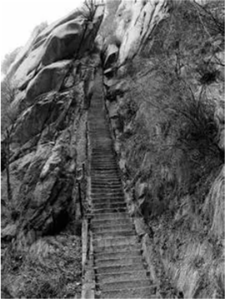 千尺幢是登華山的一段著名的險道,開鑿在懸崖峭壁上,直立千仞,氣象森然,被許多人視為畏途。像千尺幢這樣的登山道路,只有華山才有,華山也因為有了這樣的路才有了“奇”“險”的景色,奇與險成為華山特別突出的景觀特色。其它山岳也有險境,但都被掩埋在了雄或者秀等特色中,不像華山的險這般令人驚心動魄,這般讓人心潮澎湃。