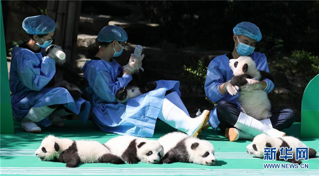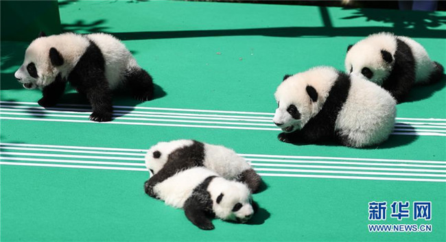 這是9月28日在成都大熊貓繁育研究基地月亮產(chǎn)房拍攝的大熊貓寶寶。 當(dāng)日,成都大熊貓繁育研究基地為2018年出生的12只新生大熊貓寶寶舉行了一場(chǎng)別開生面的亮相活動(dòng)。