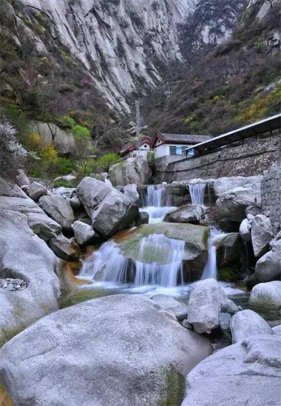 華山的水源不是十分豐富,但水景眾多。從山麓到山巔,水無(wú)一色全,玉帶貫珠,靈氣秀色,形成華山奇妙的自然景觀。集中于景區(qū)的華山峪、黃甫峪和仙峪等幽谷峪道,水流跌宕有致,清澈見(jiàn)底,如瓊漿玉液。秋天的雨季,河水激蕩,小溪淙淙,水霧漫谷,清靈幽謐,景象可人。