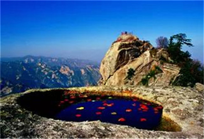 別看這池子不大,“神通”可大著哩,在海拔2000余米的峰頂上,而且峰頂主要是堅硬無比的花崗石,池水是從何而來的呢?至今都是一個謎!故又被列為華山十大謎之一。