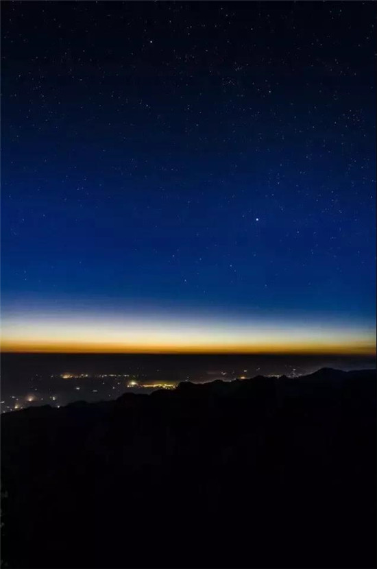 繁眼的星光,滿山的燈光,將華山映襯得一派柔和,這里的夜屏蔽了城市的喧囂與繁華,有著不屬于城市的寧?kù)o與美麗。